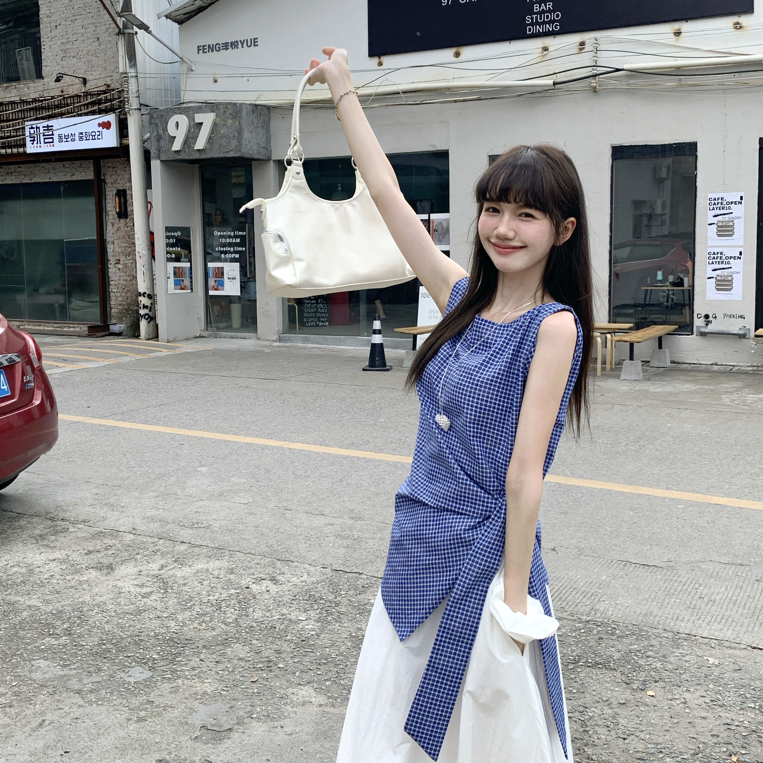 실제 샷 및 실제 가격# 여성 여름 디자인, 레트로 외부, 타이 업 스트랩, 불규칙한 허리 껴안기