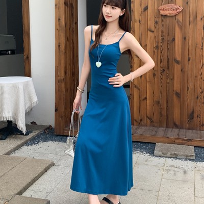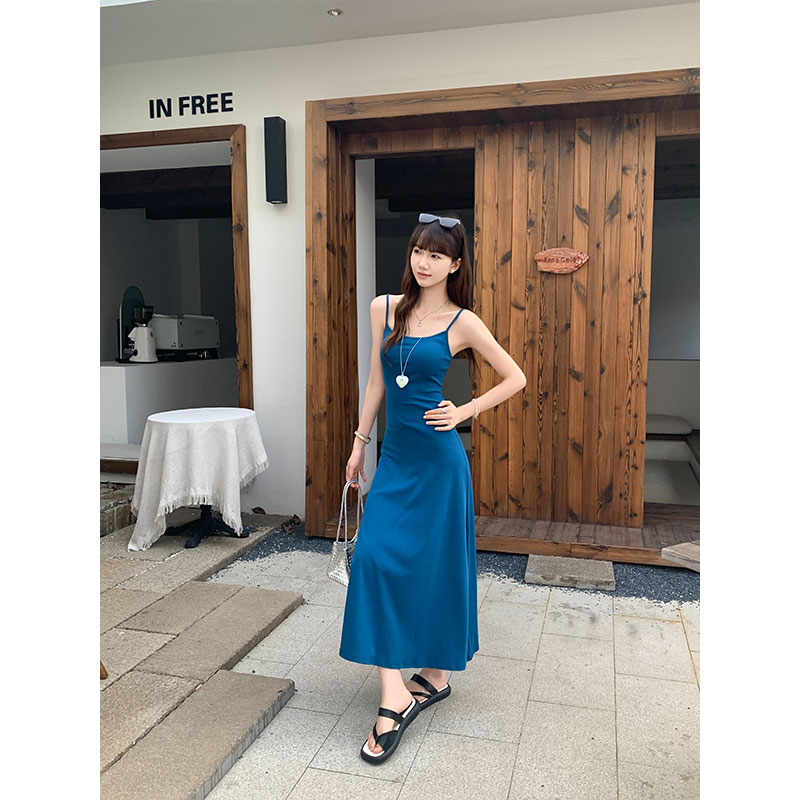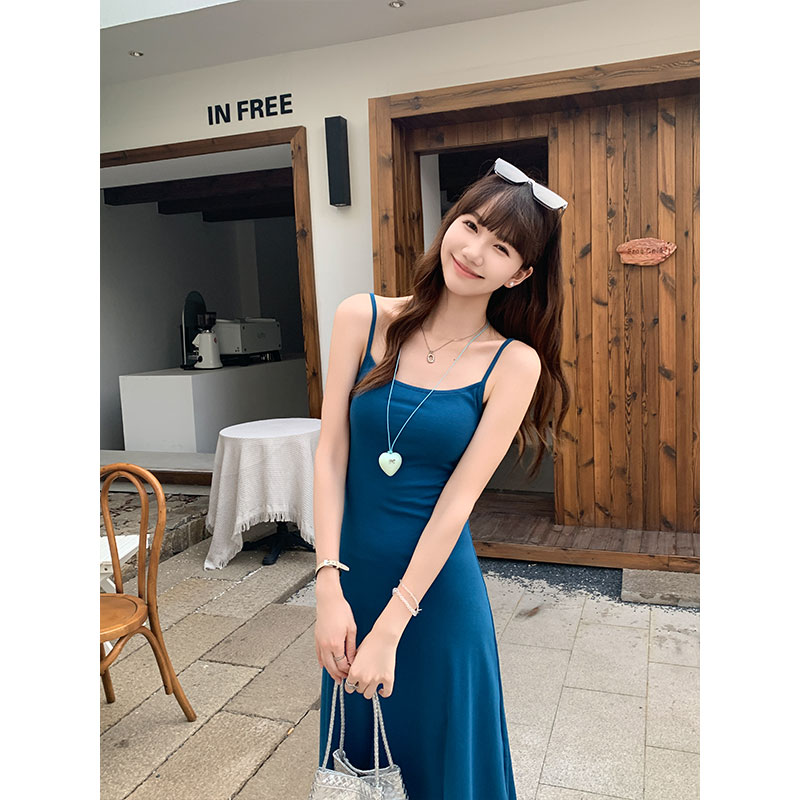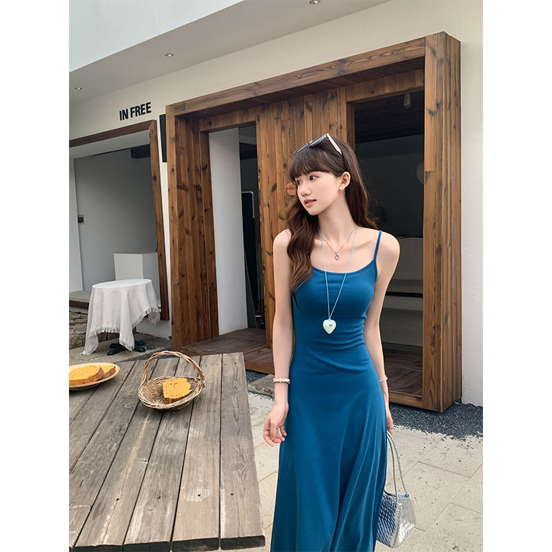 클라인 블루 서스펜더 드레스를위한 2025 여름 핫 걸 섹시 허리 껴안는 슬림 a- 라인 롱 스커트