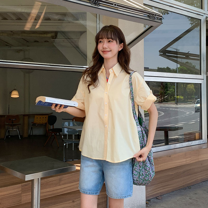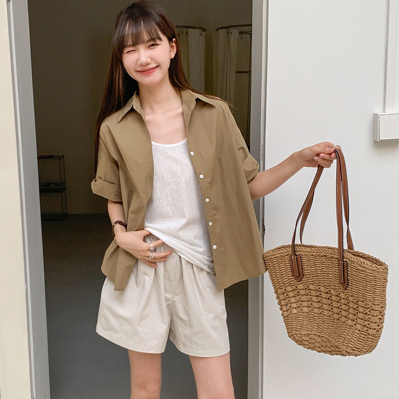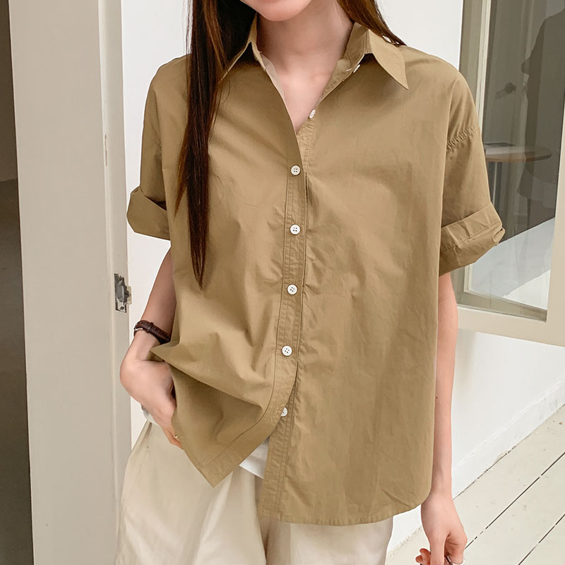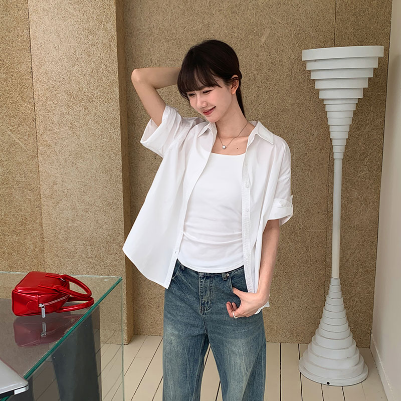 실제 가격 직접 어깨 어깨 단락 셔츠 여름에 여성을위한 2025 년 새로운 다목적 디자인 틈새 캐주얼 느슨한 탑