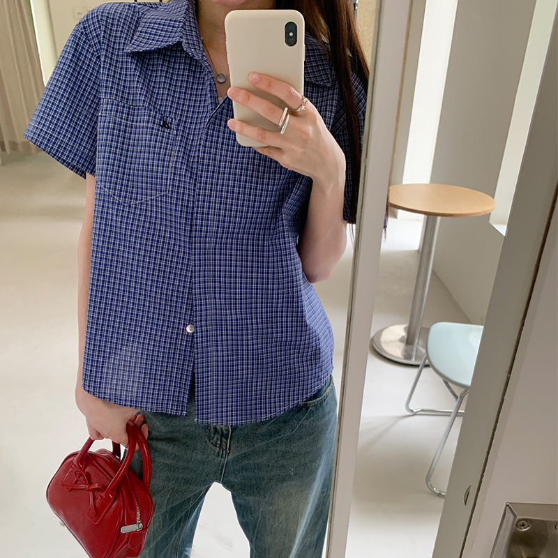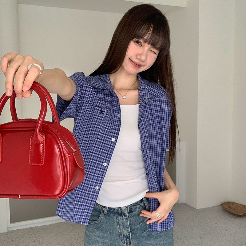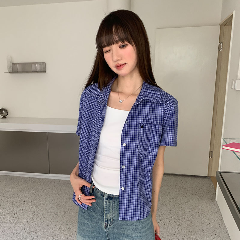 실제 가격 프론트 어깨 어깨 단락 셔츠 여성 2025 새로운 디자인 틈새 캐주얼 느슨한 탑
