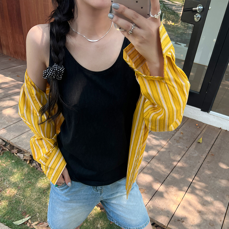 여름에 여성을위한 진짜 가격 u-neck 느슨한 조끼 2025 새로운 게으른 스타일 레이어 레벨 레벨 탑