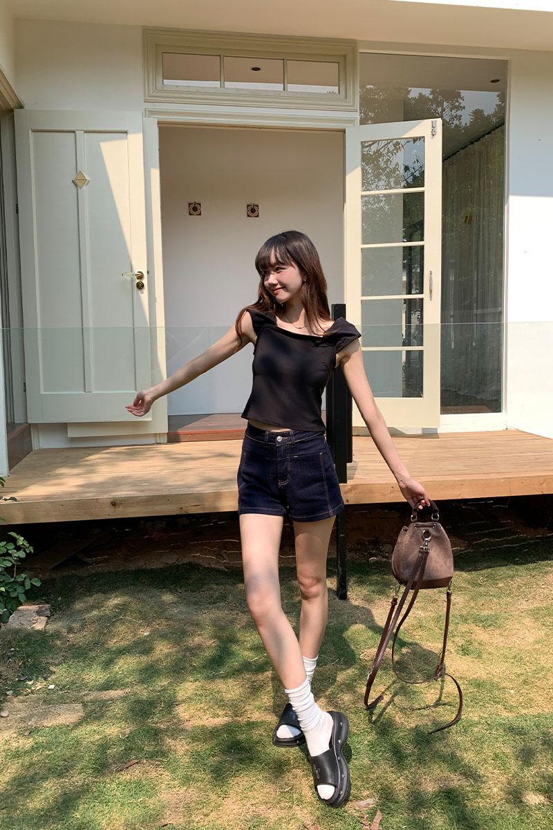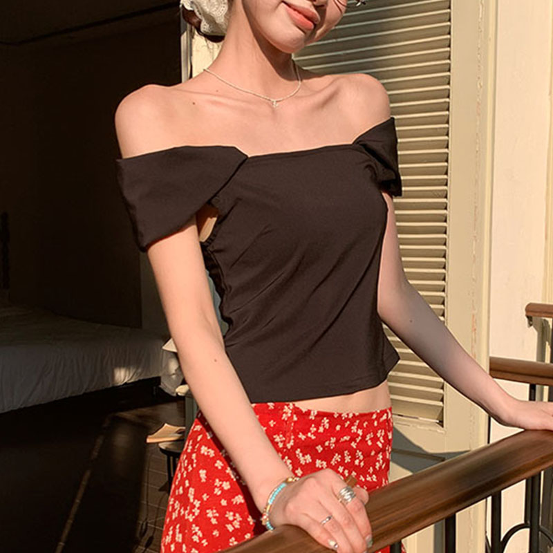 실제 가격#블랙 서스펜더 조끼 민소매 여름 새로운 달콤하고 멋진 소녀 디자인 여성을위한 슬림 한 탑