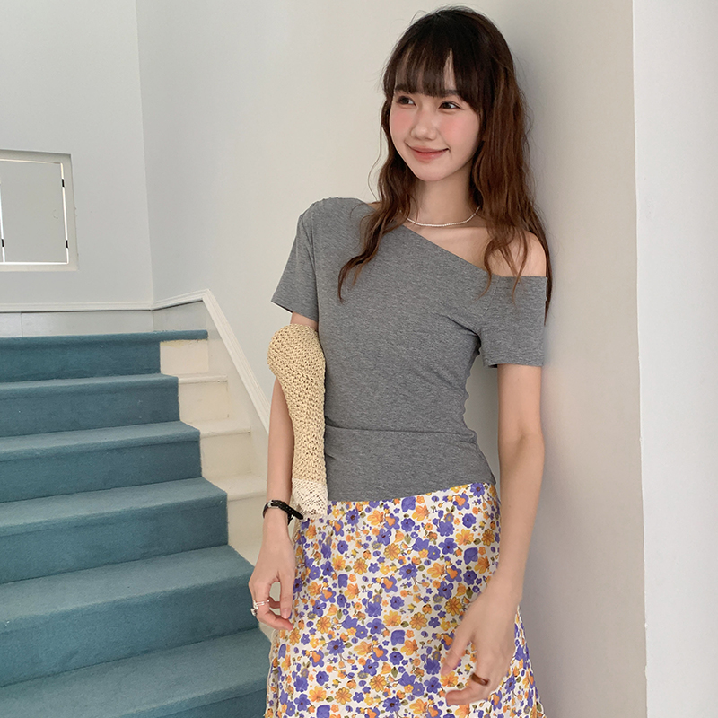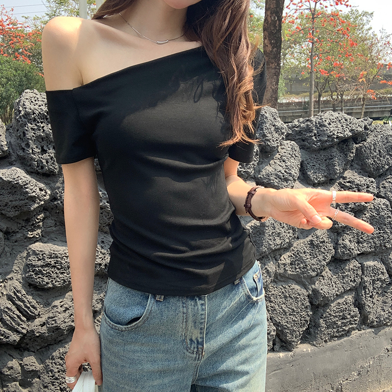 2025 년 여름에 여성을위한 실제 오프 숄더 짧은 슬림 티셔츠