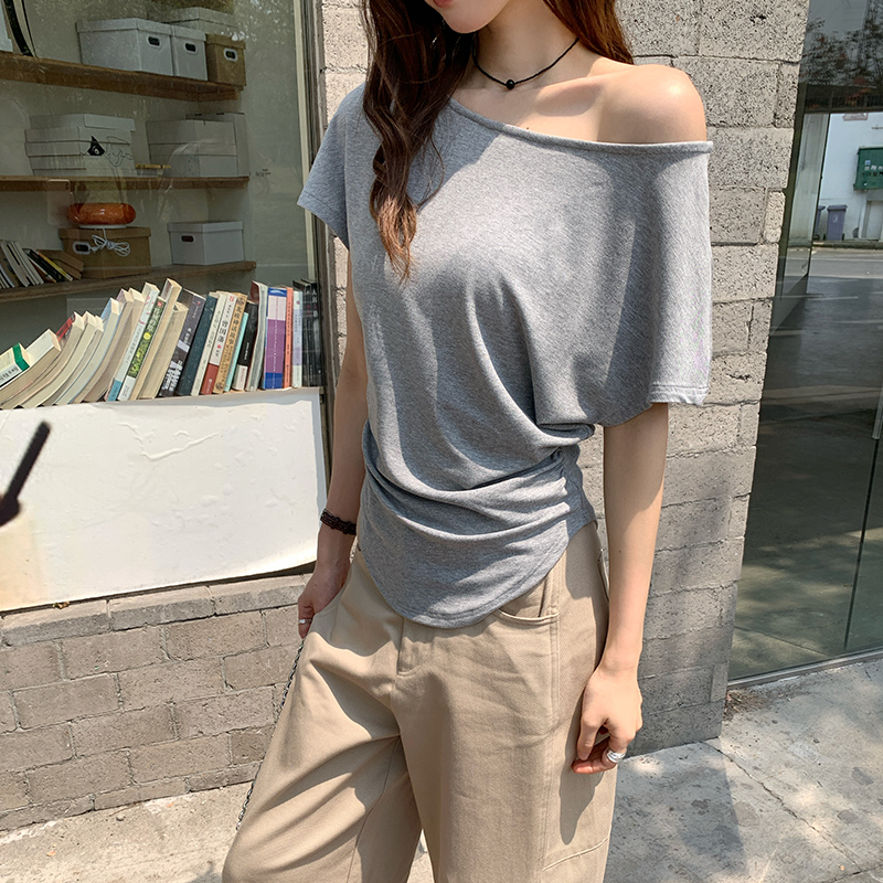 여성을위한 실제 1 개의 숄더 단점 티셔츠 2025 새로운 디자인, 허리 껴안기, 슬리밍 어깨가 누출 된 쇄골 탑